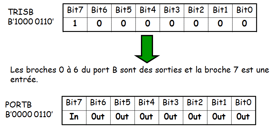 Exemple de configuration de TRISB=0b10000000